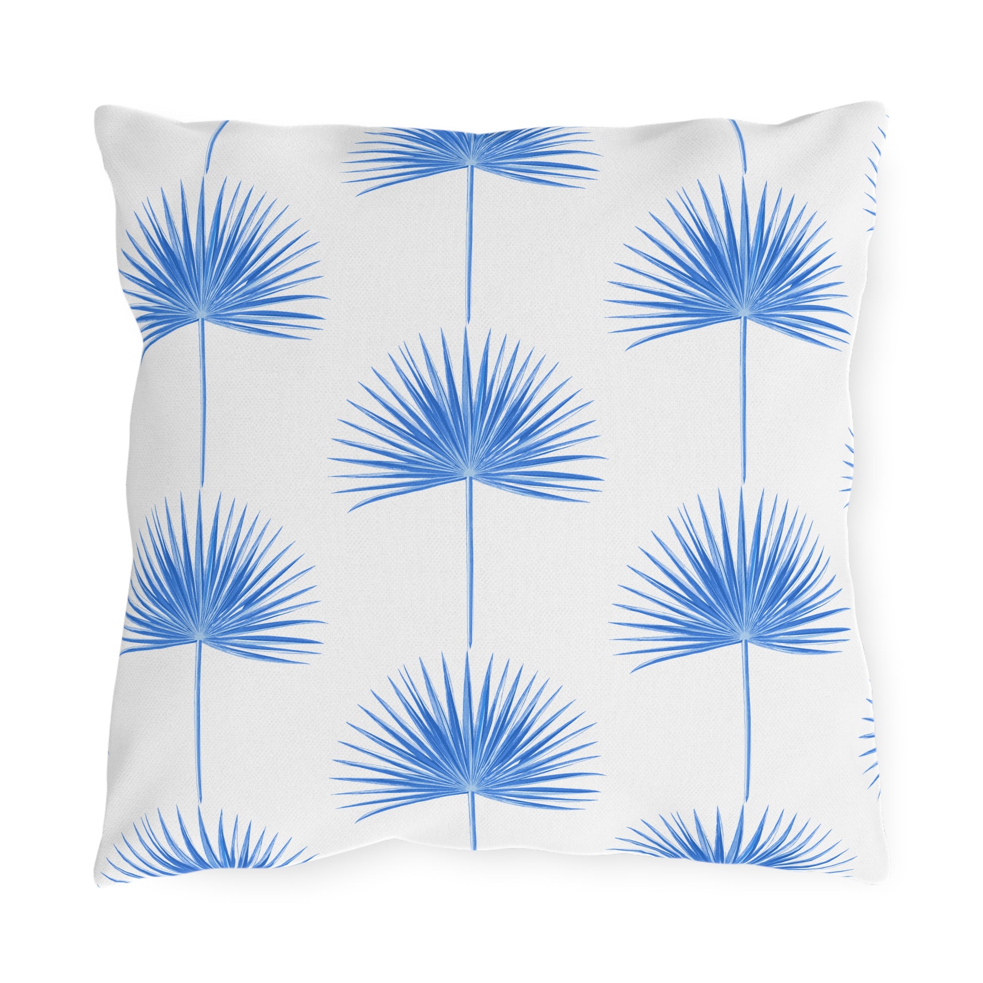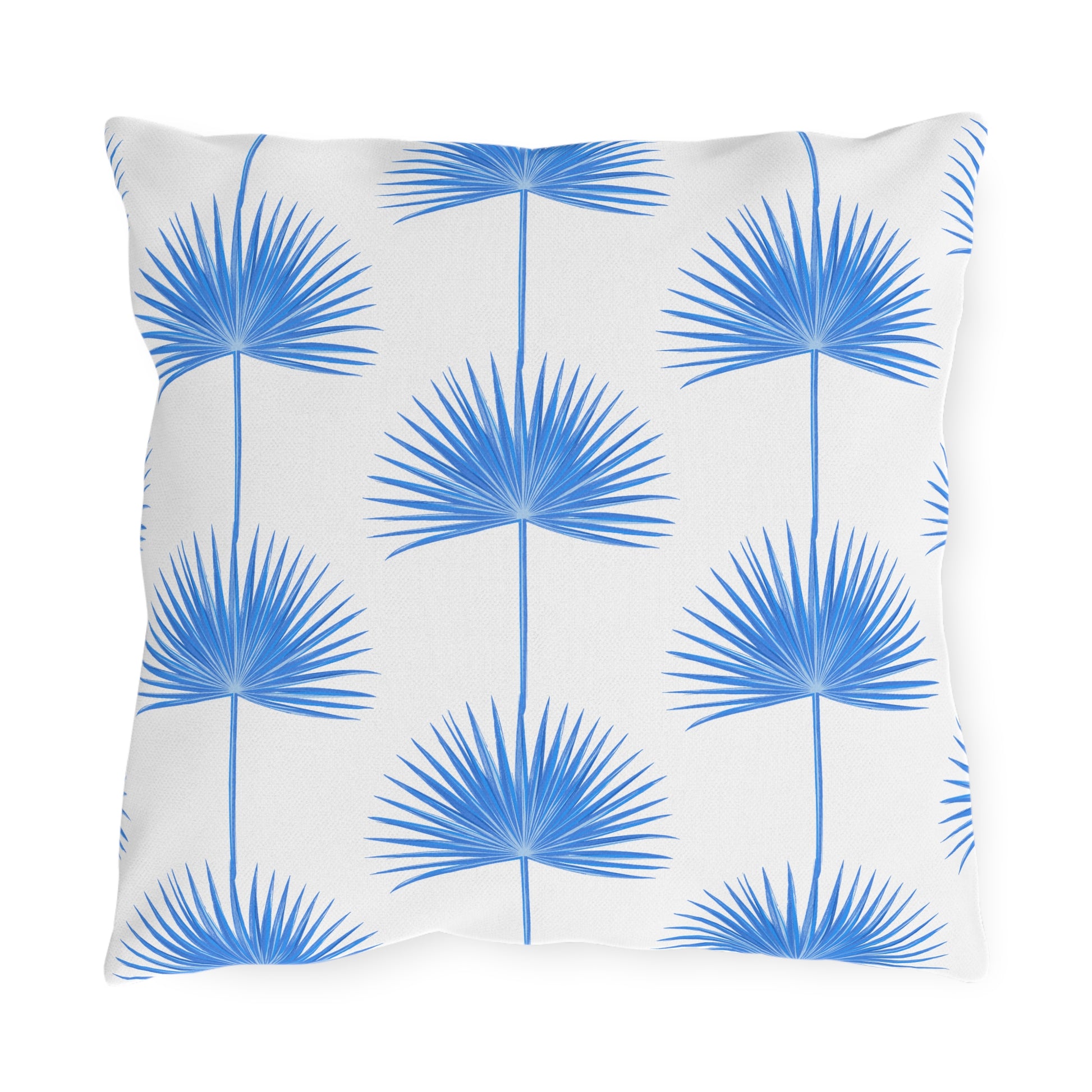 Blue Fan Palm Leaf Outdoor Pillow