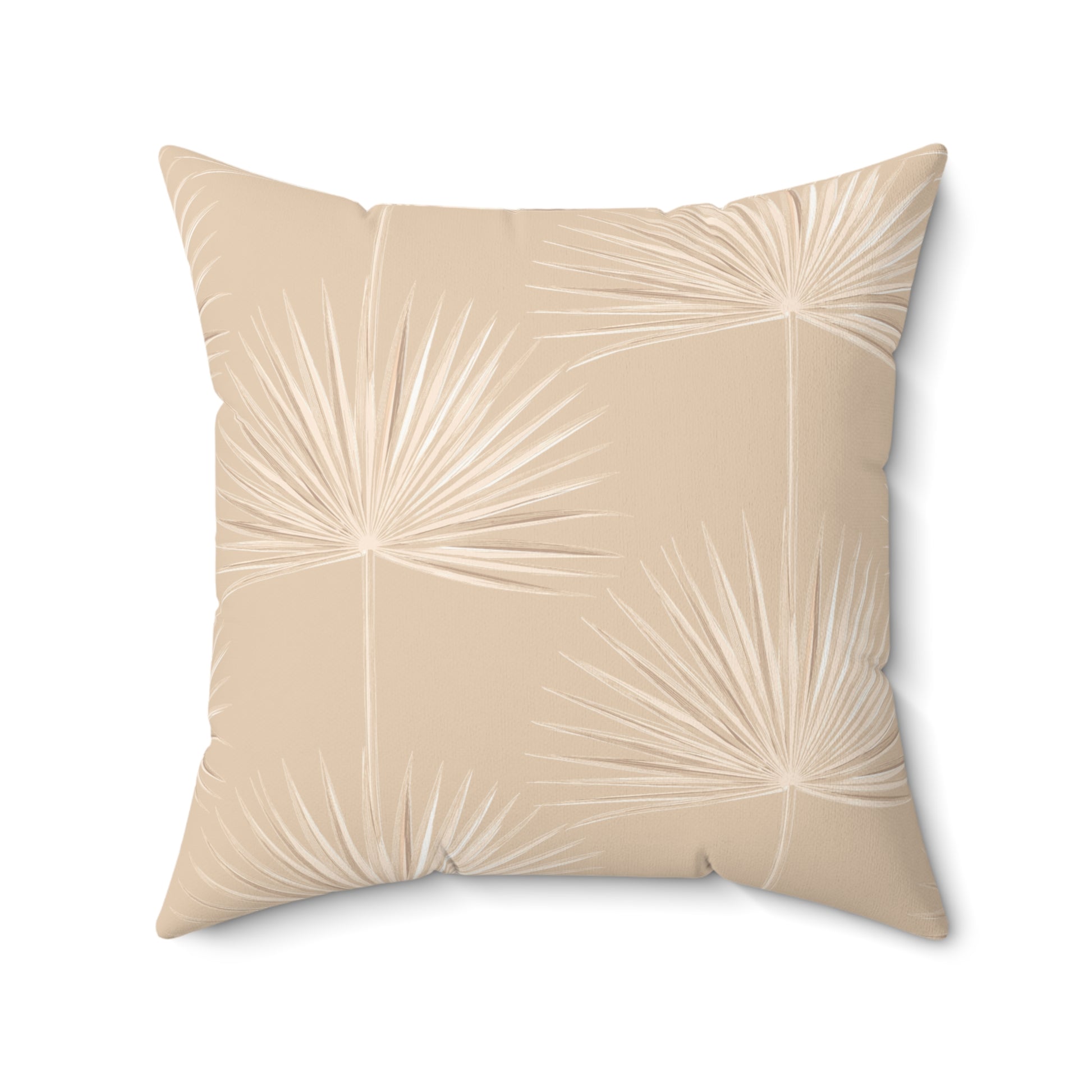Palm Fan Pattern Faux Suede Pillow Tan
