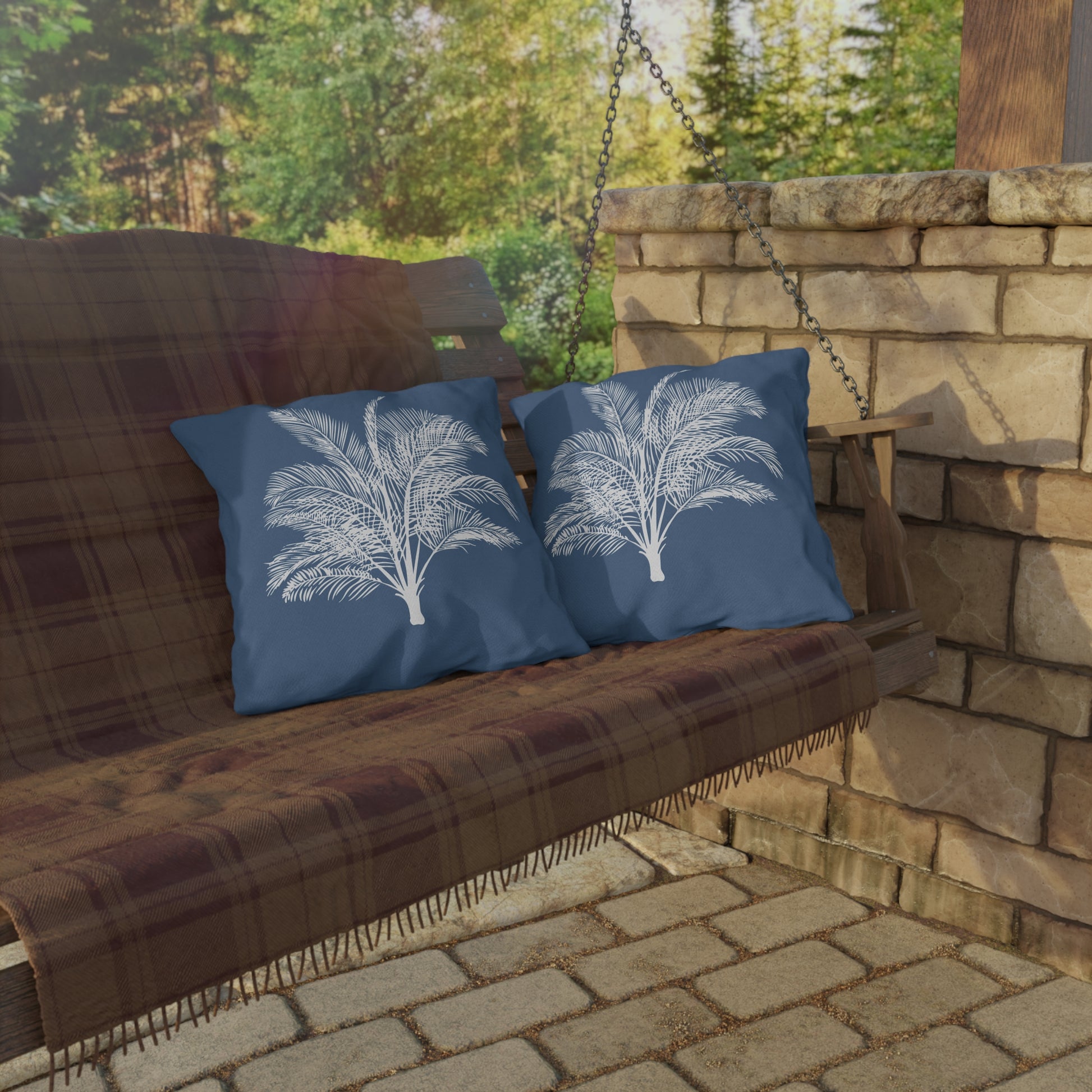 Wide Palm Outdoor Pillow Blue